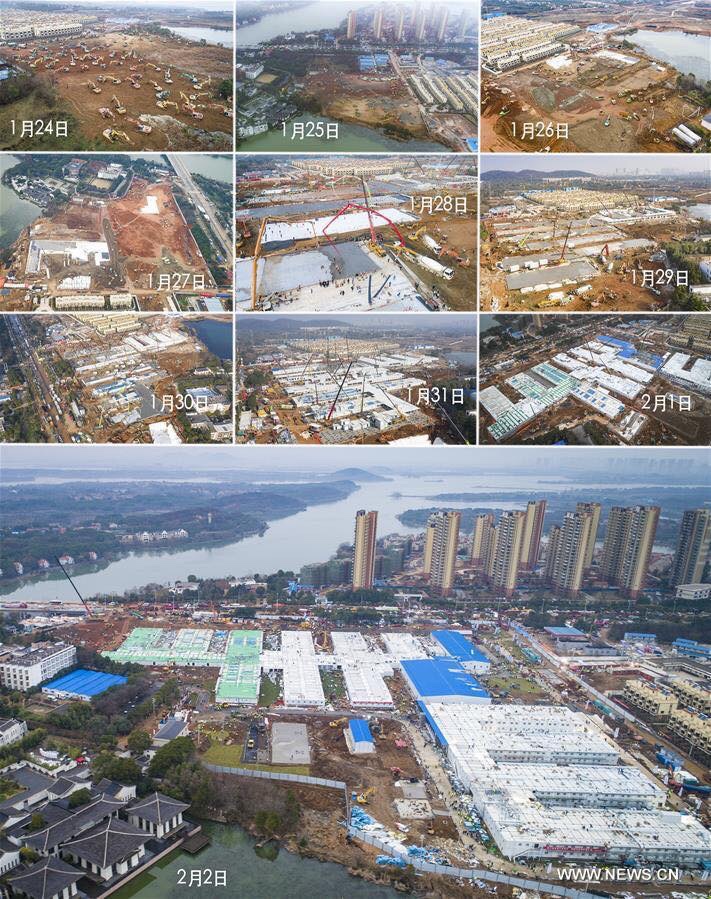 الصين بلد المعجزات تعلن عن اكتمال بناء مستشفي #هوشنشان لعلاج المصابين بفيروس كورونا في #ووهان، الذي أنجز في وقت قياسي بـ10 أيام فقط وبسعة 1000 سرير وبالطاقم الطبي من القوات المسلحة الصينية وتم تسليمه امس الاحد ويبدا العمل اليوم الاثنين.